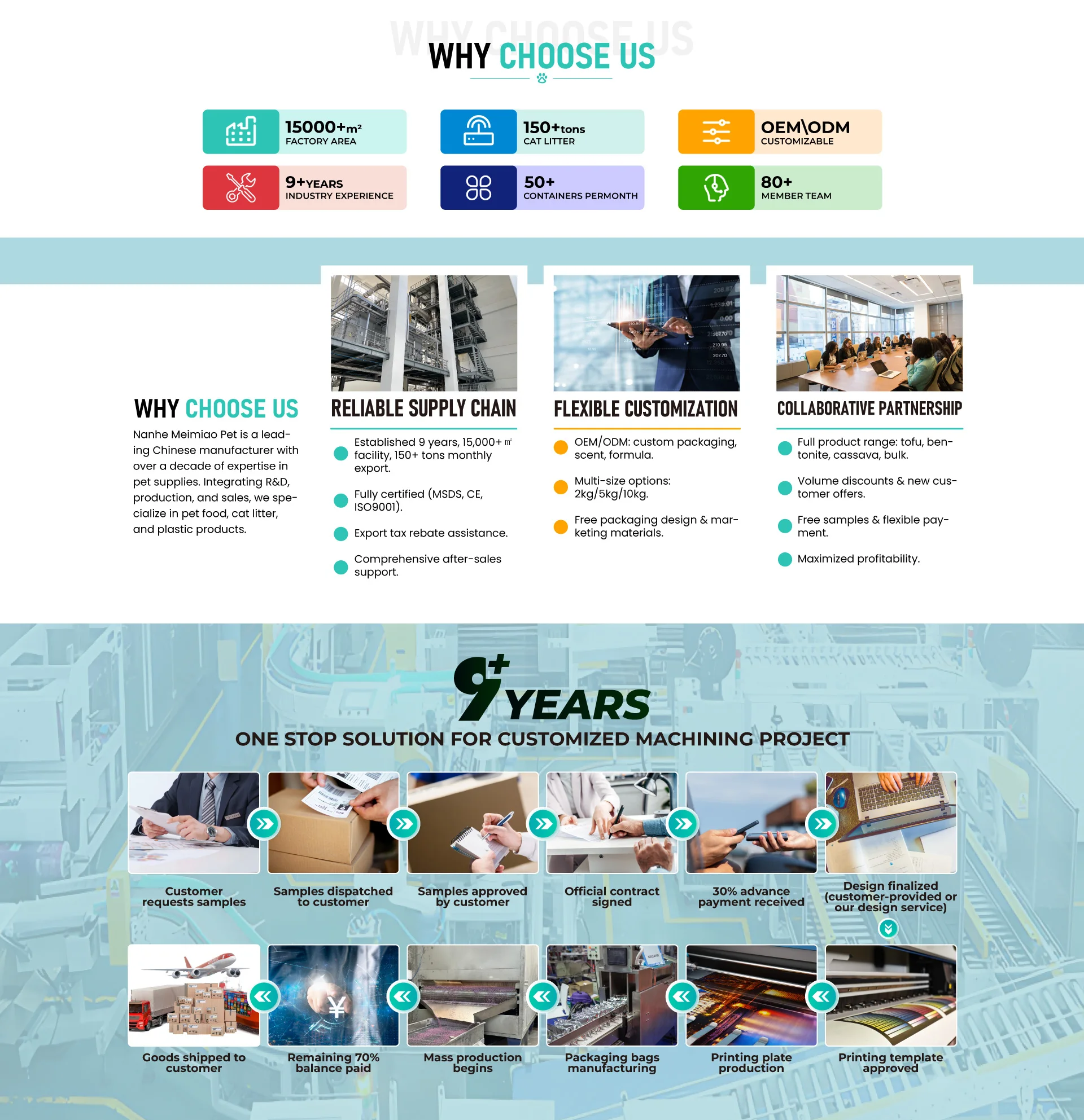 Principaux produits : Litière pour chat tofu, litière pour chat bentonite, tampons d'urine pour animaux de compagnie, fournitures pour animaux de compagnie, aliments pour animaux de compagnie